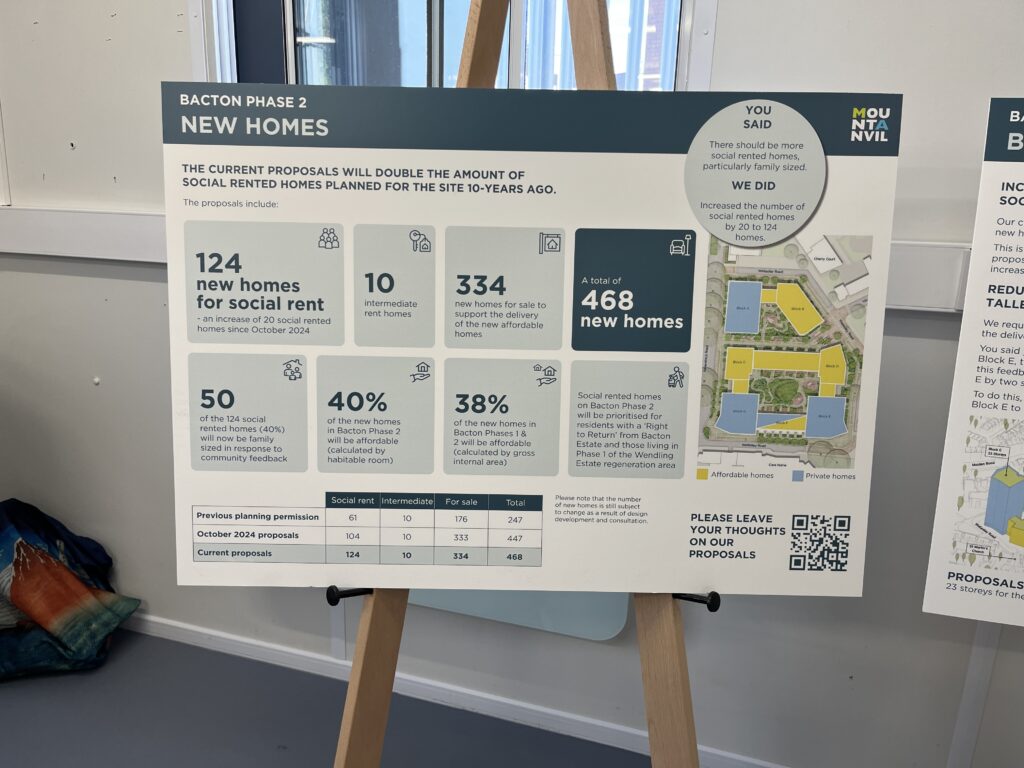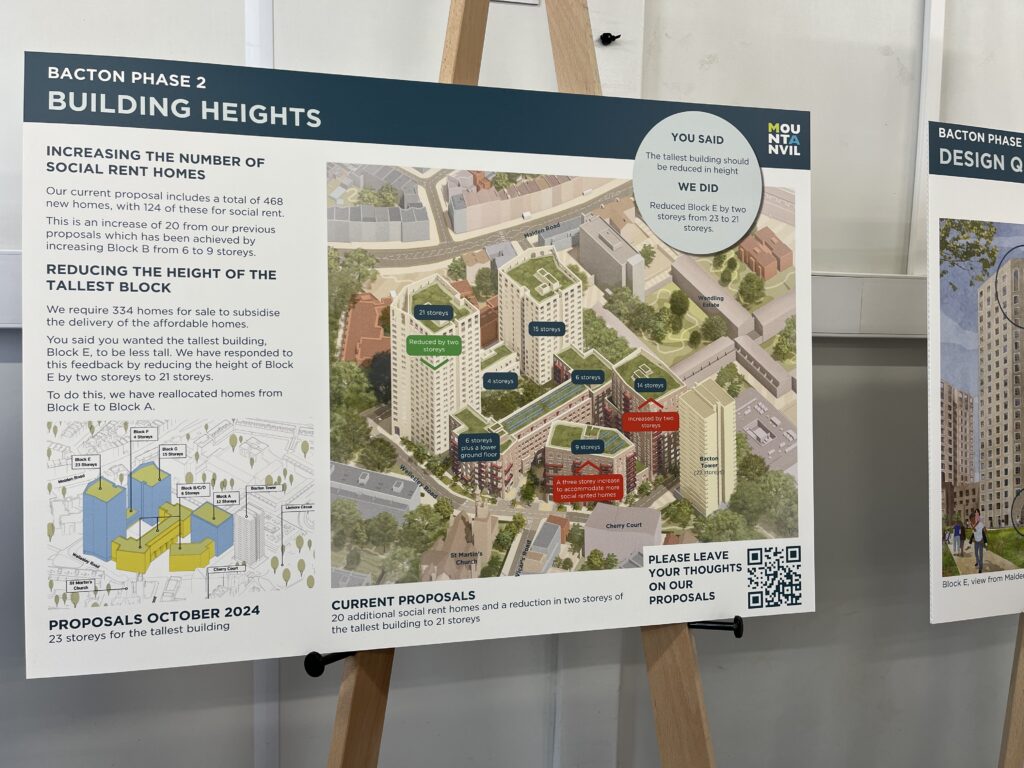 The second scheme presented by Mount Anvil nearly a year later, has increased the total number of homes to 468. The following photos are from the consultation event held on 25th September 2025: